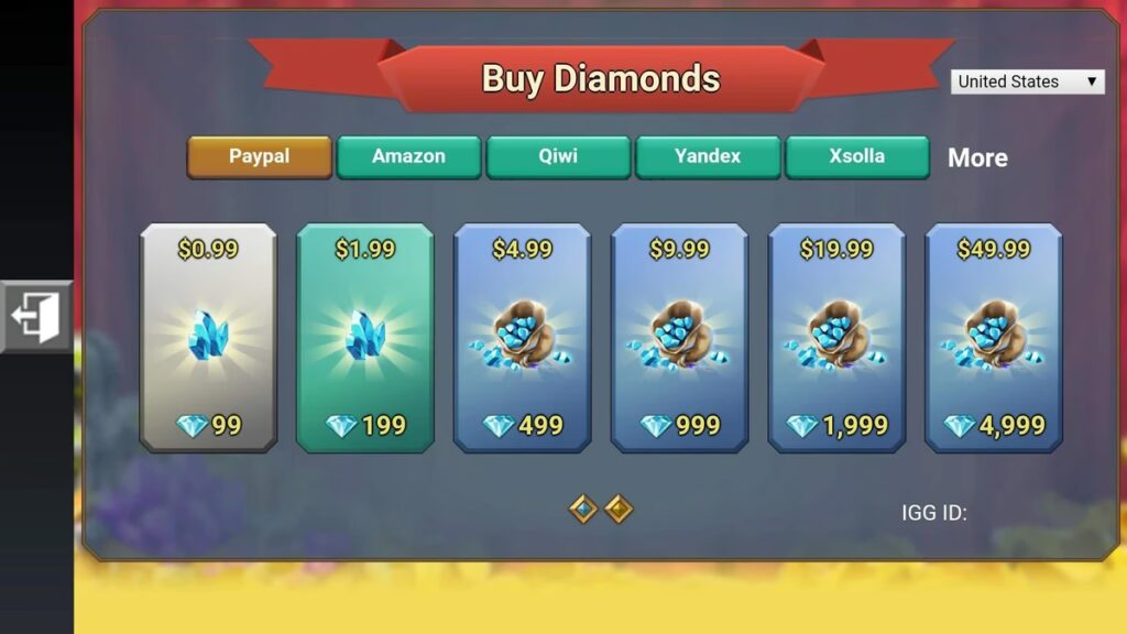 - Vælg et Diamanttilbud: Gennemse de tilgængelige diamantpakker. Ofte er der tidsbegrænsede tilbud eller bonusser.