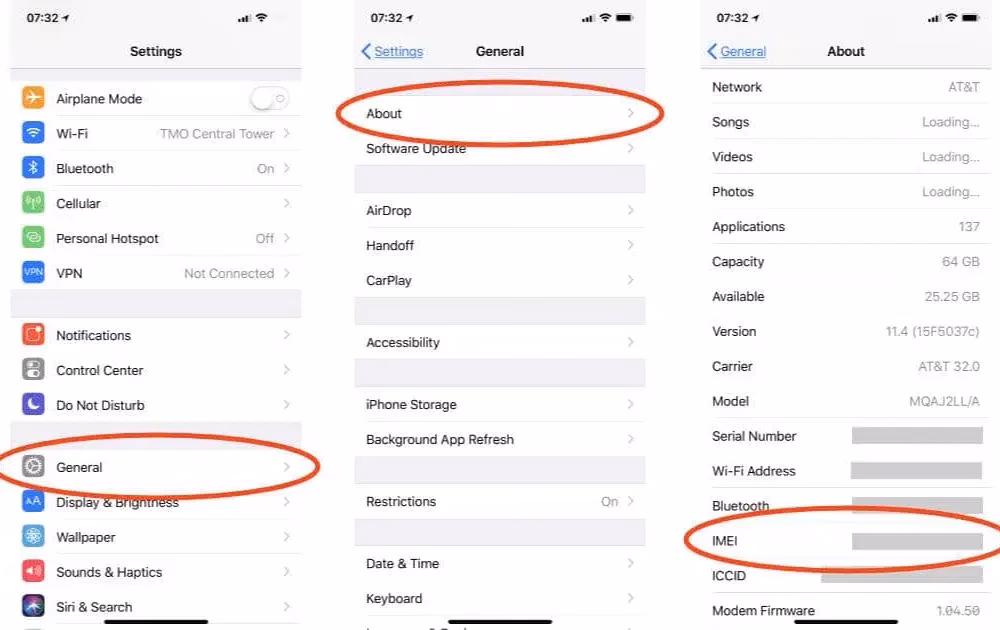 - Se IMEI-nummeret: En pop-up-boks eller en ny side vil vise detaljer om enheden, herunder dens serienummer og IMEI-nummer.