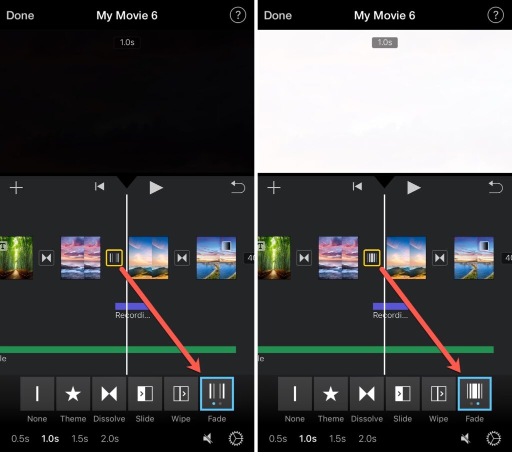 Nu hvor dit lydklip er på plads, er det tid til at anvende fading. Denne proces er ret ligetil i iMovie på iPad: