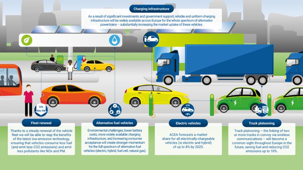 - Elektrificering og Batterifremskridt: Solid-state-batterier vil markant forbedre energitætheden og udvide elbilernes rækkevidde. Trådløse opladningsløsninger og lokal batteriproduktion vil reducere omkostningerne og forbedre effektiviteten.