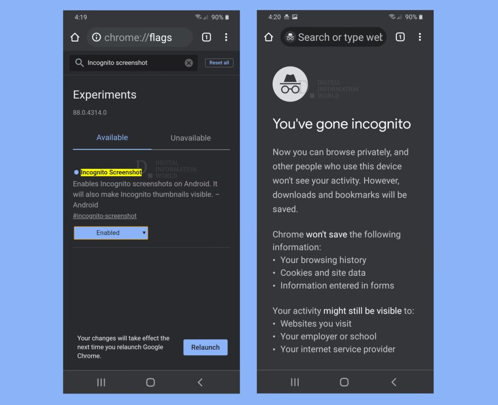 Does Android have a chrome incognito icon?