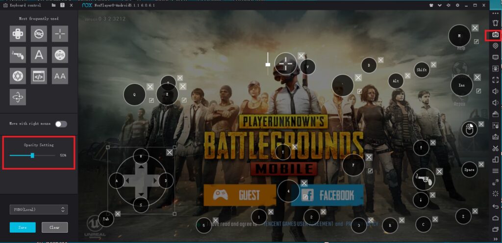- Mus og Tastatur: Nox giver dig mulighed for at kortlægge tastatur- og musehandlinger til spillets touch-kontroller. Du kan trække og slippe ikoner for skud, bevægelse, sigte osv., og tildele dem til specifikke taster. Der findes ofte foruddefinerede profiler til PUBG Mobile, som du kan starte med.