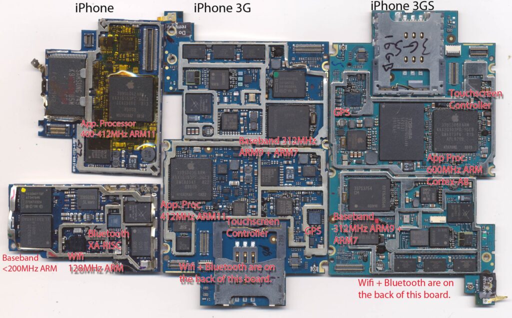 Under motorhjelmen delte den originale iPhone sin applikationsprocessor, S5L8900, med både iPhone 3G og den første iPod touch. Denne processor var hjernen bag enhedens ydeevne og dens evne til at køre komplekse applikationer. For bassebåndet, som håndterer mobilkommunikation, benyttede iPhone sig af S-Gold 2-chippen. Bluetooth-funktionaliteten blev leveret af CSR BlueCore4 Chip (BC41B41), hvilket yderligere understregede dens status som en fuldt udstyret, moderne smartphone for sin tid. Den innovative anvendelse af en virtuel skærmtastatur eliminerede behovet for fysiske knapper og banede vejen for den gestusbaserede interaktion, vi kender i dag.