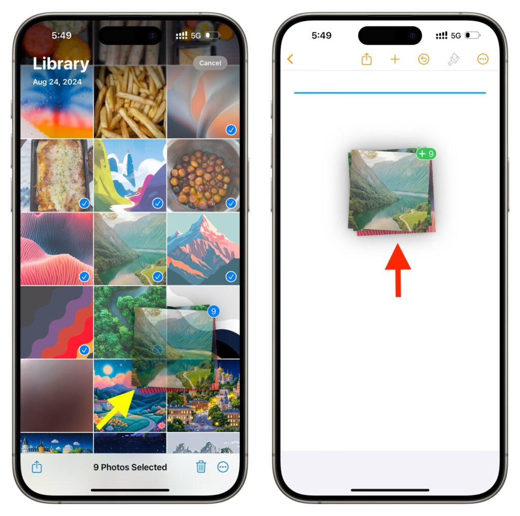 Sammenligning: Træk-og-slip i iOS 15 vs. iOS 16