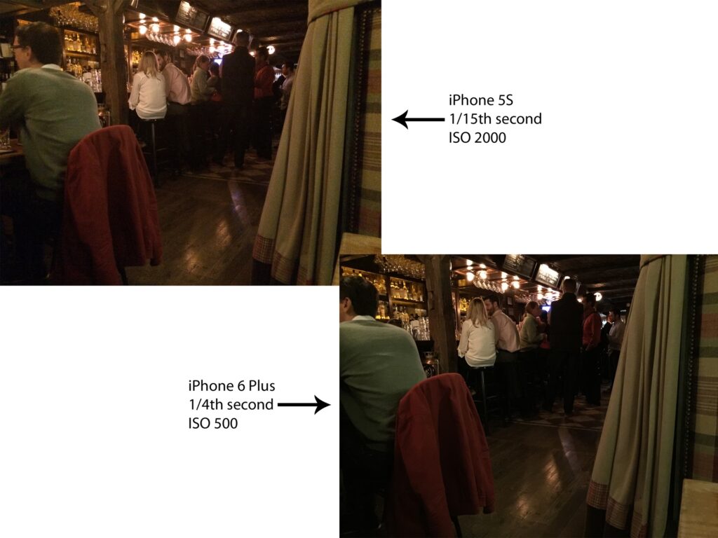 iPhone 6 Plus beholdt 8-megapixel sensoren, men tilføjede en afgørende ny funktion: optisk billedstabilisering (OIS). Dette var en enorm forbedring, især under dårlige lysforhold og ved videooptagelse, da det hjalp med at reducere sløring forårsaget af håndbevægelser. Blændeåbningen var stadig f/2.2, men billedbehandlingen blev forbedret med den nye A8-chip, hvilket resulterede i bedre farvegengivelse og støjreduktion. Videooptagelse blev også forbedret med muligheden for at optage 1080p ved 60 fps og slow-motion ved 240 fps. Frontkameraet fik også en opgradering, med en f/2.2 blændeåbning og forbedret HDR til selfies. OIS var en funktion, der virkelig adskilte 6 Plus fra sin forgænger og fra den mindre iPhone 6, hvilket gjorde den til det foretrukne valg for dem, der prioriterede kameraets ydeevne.