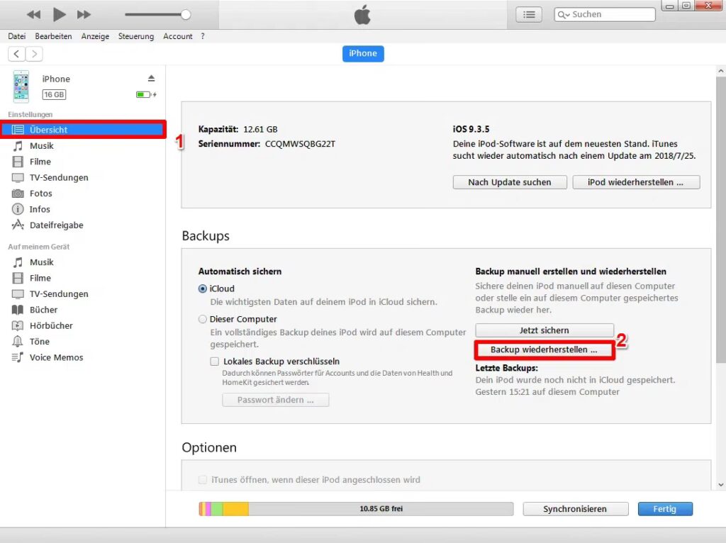 3. Gendannelse via iTunes Backup (Hvis du har en tidligere backup)