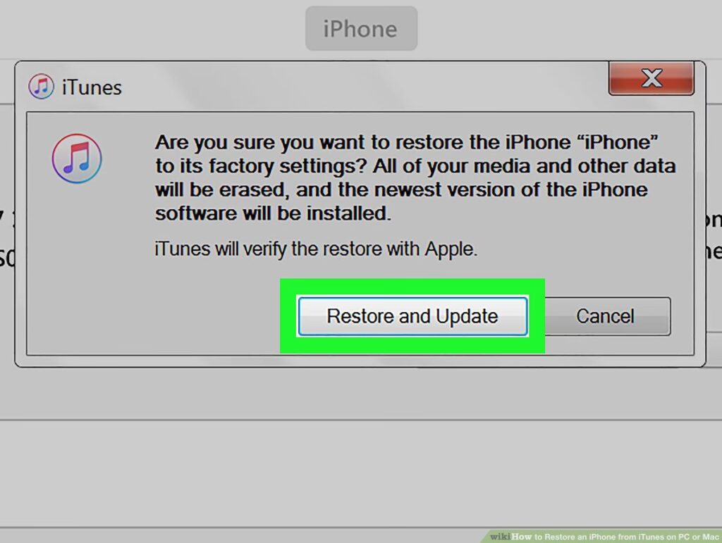 - Start gendannelsen: Efter sikkerhedskopiering (eller hvis du sprang det over), vil du blive bedt om at bekræfte din beslutning. Klik på "Gendan" igen for at starte processen. iTunes vil nu downloade den nyeste iOS/iPadOS-software (hvis den ikke allerede er downloadet) og derefter installere den på din enhed.