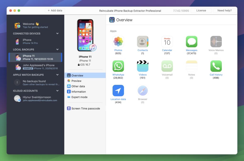 iMazing står ofte øverst på listen over alternativer, og med god grund. Det er et kraftfuldt og alsidigt værktøj, der tilbyder en bred vifte af funktioner ud over blot at udtrække data fra sikkerhedskopier. iMazing giver dig mulighed for at overføre filer mellem din iPhone og din computer, administrere apps, se din enheds data i detaljer, og meget mere. Dets brugervenlige grænseflade gør det tilgængeligt for både begyndere og avancerede brugere. Selvom det kan virke overvældende med alle dets funktioner, er det et fremragende valg for dem, der ønsker en alt-i-en løsning.