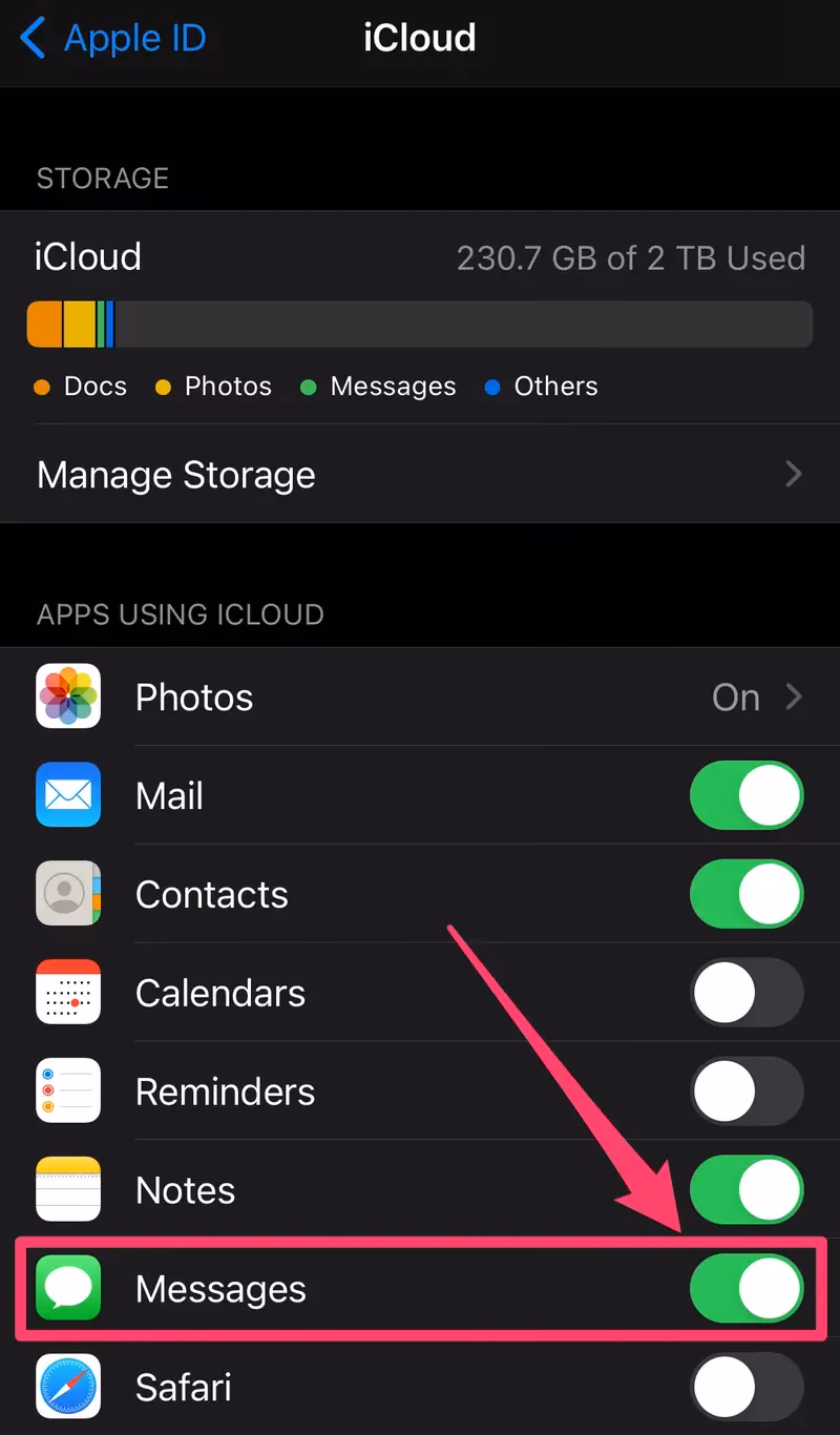 - Vælg Beskeder i iCloud fra listen over apps, der bruger iCloud.