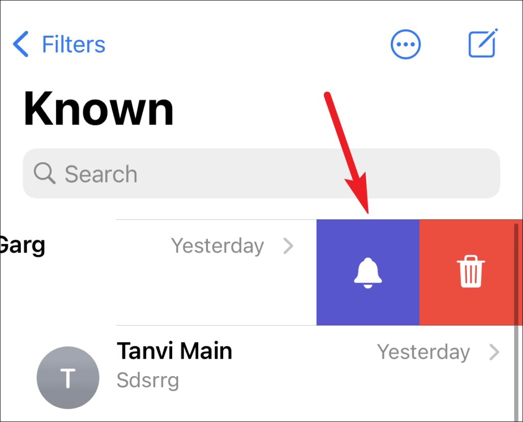 - Find og tryk på den beskedtråd eller samtale, der har halvmåneikonet ved siden af sig.