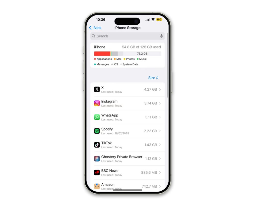 - Gå til Indstillinger > Generelt > iPhone-lager.