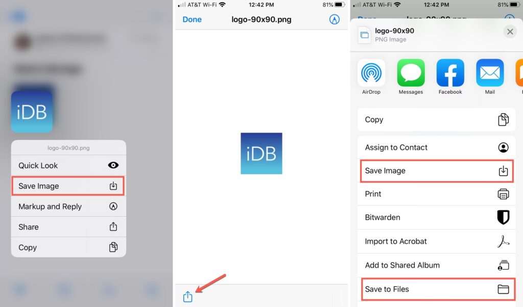 - Gem billede/video: Hvis den vedhæftede fil er et billede eller en video, vil du typisk se en mulighed for at 'Gem billede' eller 'Gem video'. Dette gemmer automatisk filen i din Fotos-app.