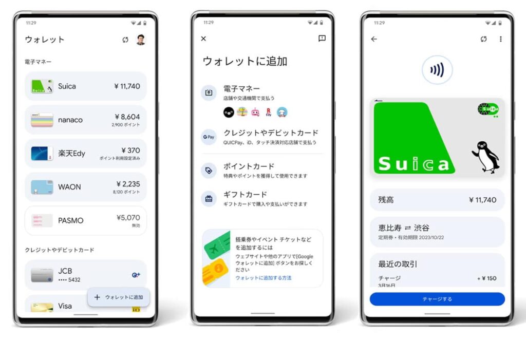 Drevet af Google er Google Pay en digital tegnebog og en anden betalingsapp i Japan, hvor du sikkert kan tilføje kreditkort, transitbilletter, loyalitetskort og endda eventbilletter. Du kan indstille en standardbetalingsmetode eller vælge fra dit registrerede debet-/kreditkort ved kassen. Denne digitale tegnebog kan sikkert gemme alle dine iD- og QUICPay-kompatible kredit-/debetkort og loyalitetskort. Google Pay understøtter Suica samt Rakuten Edy. For at bruge et japansk-udstedt kreditkort med Google Pay skal du have en FeliCa-chip, der understøtter Osaifu-Keitai på din telefon. Google Pay giver brugere mulighed for at aktivere fysisk godkendelse som fingeraftryks-ID for at få adgang til betalingsappen. For enheder uden fingeraftryks-ID aktiveres Google Pay med en adgangskode. Når en bruger foretager en betaling til en forhandler, sender Google Pay ikke et kredit- eller debetkortnummer med betalingen. I stedet genererer det et unikt virtuelt kontonummer, der repræsenterer brugerens konto. Denne service holder kundens betalingsoplysninger fortrolige og sender en engangs-sikkerhedskode i stedet for kort- eller brugerdetaljer. Ligesom Apple Pay kan Google Pay integrere og oplade Suica/PASMO-kort med udenlandske kreditkort.