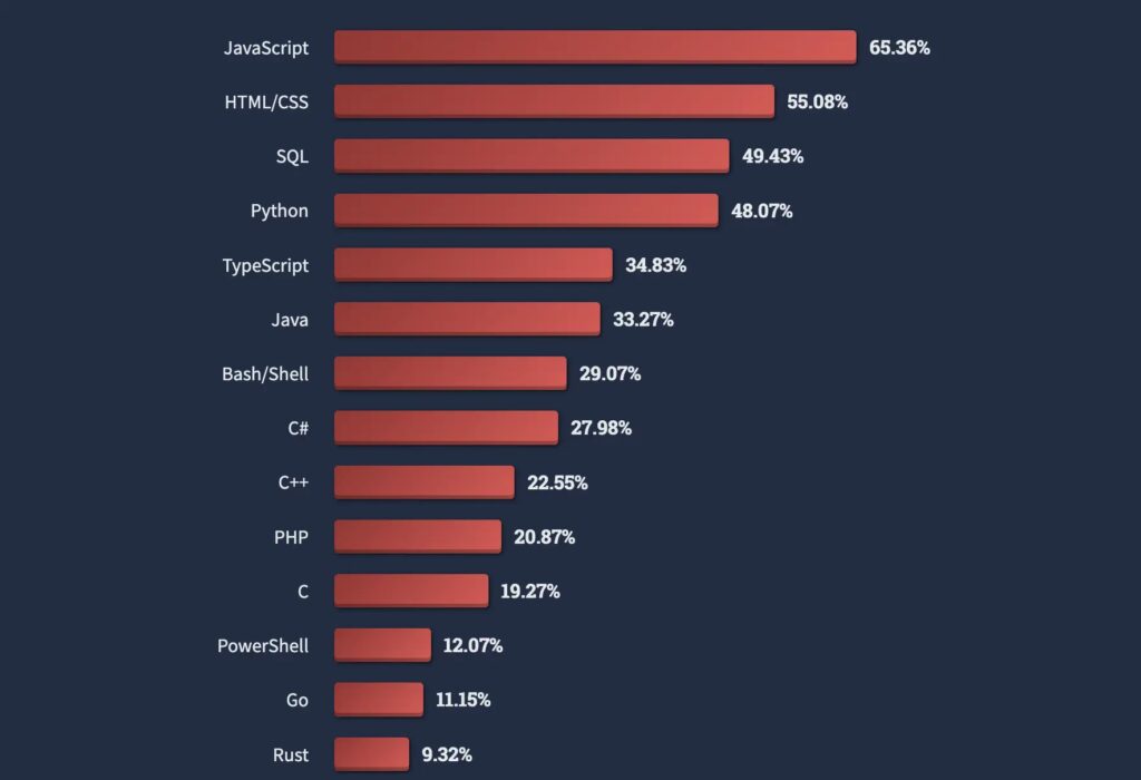 Som vi så i Stack Overflows undersøgelse fra 2022, fortsætter JavaScript sin årtier lange dominans blandt programmeringssprog. Med imponerende 67,9% overgår det HTML+CSS, SQL og Python. Hvad vi kan udlede heraf, er, at JavaScript ikke er på toppen af programmeringsfødekæden ved et tilfælde. Det er et ekstremt populært programmeringssprog på grund af dets brugervenlighed og den udbredte anvendelse. Det vil ikke forsvinde natten over, og det ser ud til at være her i meget lang tid. At vælge en framework-teknologi, der udspringer af JavaScript, er et sikkert valg, både for uformel læring, for at øge dine færdigheder, og især som et karrierevalg. Fremtiden er digital, og det meste af den vil blive bygget ved hjælp af JavaScript.