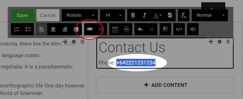 Hvis dit telefonnummer er 0045 12 34 56 78, ville det korrekte HTML-link se således ud: