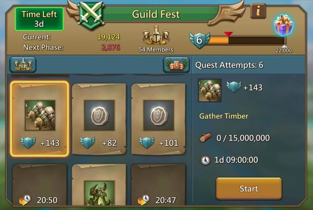 - Ikke at forberede sig: At starte Guild Fest uden tilstrækkelige ressourcer, speed-ups eller energi vil begrænse din evne til at tage og fuldføre de bedste quests.