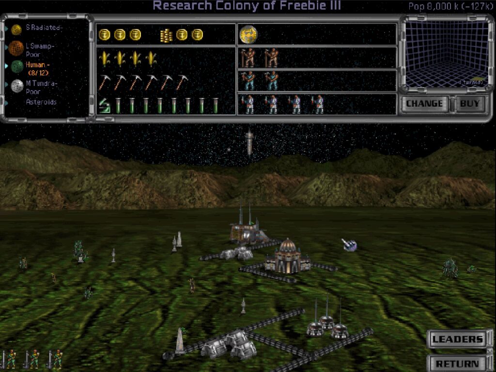 Hver planet har unikke egenskaber som størrelse, frugtbarhed, og tilstedeværelsen af naturressourcer. Spillere skal balancere befolkningstilvækst, fødevareproduktion, industriproduktion og forskning på hver planet. Opbygning af specifikke bygninger kan forbedre disse aspekter, men kræver også arbejdskraft.