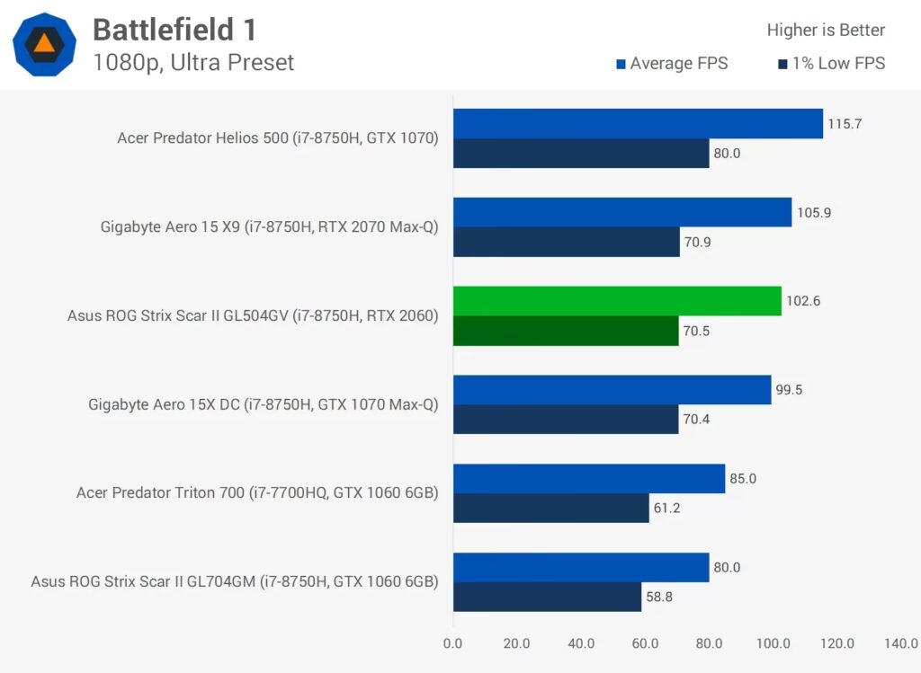 Når vi taler om den rå gaming ydeevne, placerer den mobile RTX 2060 sig solidt i midtersegmentet. Sammenlignet med sin desktop-modstykke er den naturligvis bagud på grund af de reducerede clockfrekvenser og TGP. Dog er dens ydeevne sammenlignelig med et ældre NVIDIA GeForce GTX 1070 (desktop-versionen), hvilket er en imponerende præstation for et mobilt kort.