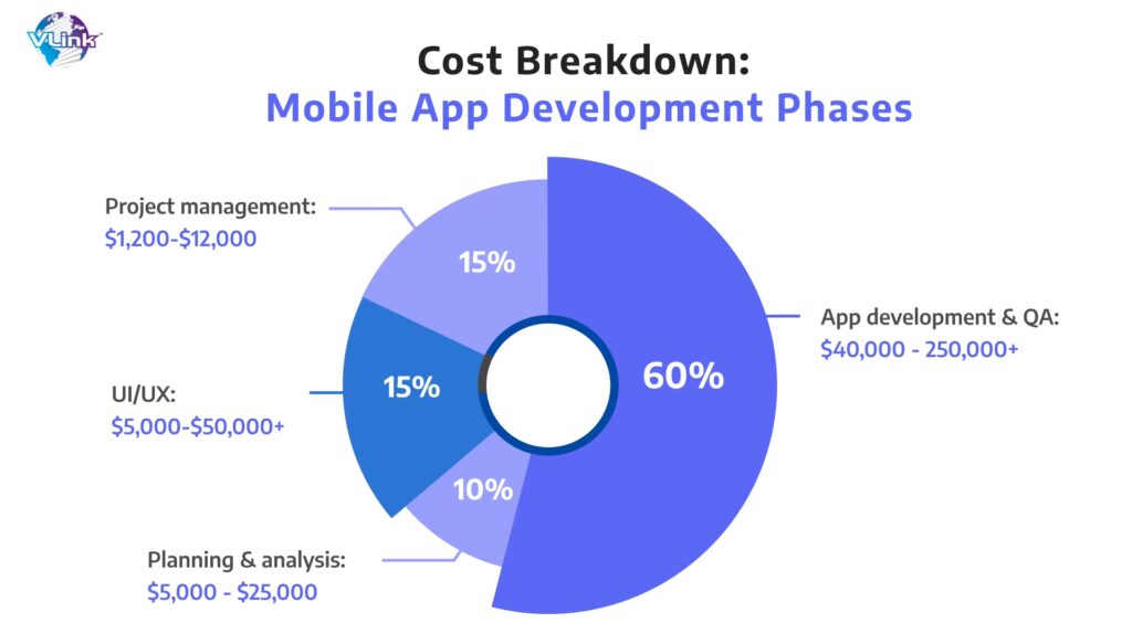 Udviklingsfasen kræver 40-55% af et mobil app-udviklingsbudget. Størstedelen af budgettet allokeres her, og dækker kodning, backend-infrastruktur og integration af funktioner. Denne fase omdanner designet til en funktionel app og er den mest arbejdskrævende. Omkostningsintervallerne er brede, fra 30.000 USD til over 300.000 USD for meget komplekse projekter.