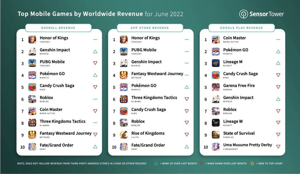Året 2024 cementerede nogle titlers status som giganter, mens andre brød igennem med imponerende resultater. Som forventet fastholdt Honor of Kings fra Tencent sin position som verdens mest indbringende spil. Siden 2017 har det været den ubestridte konge på App Store og Google Play, kun overgået i pandemiårene 2020 og 2021 af et andet Tencent-spil, PUBG Mobile. I 2024 indtjente Honor of Kings hele 2,6 milliarder dollars, hvilket vidner om dets enorme popularitet, især i Asien.