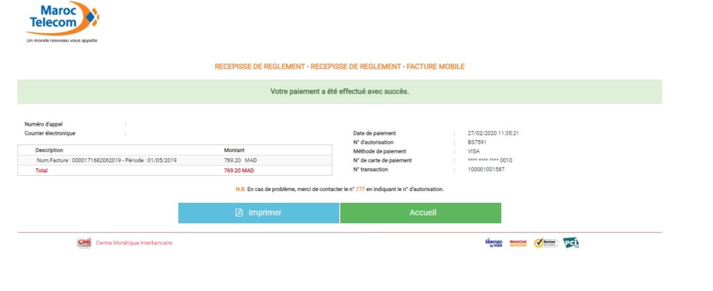 - Bekræft transaktionen: Hold øje med dine transaktionsbekræftelser og kvitteringer. Sammenlign dem med dine bankudskrifter for at sikre, at alle beløb stemmer overens. Hvis du bemærker mistænkelig aktivitet på din konto eller uoverensstemmelser, skal du straks kontakte din bank og Maroc Telecoms kundeservice for at undersøge sagen.