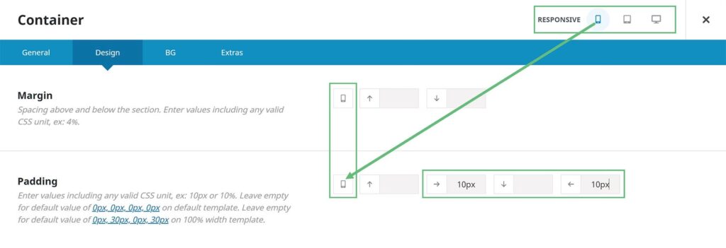 Brugen af Responsive Option Sets er intuitiv og integreret direkte i Avada Page Builder. Når du redigerer en side eller et indlæg, og du arbejder med containere eller kolonner, vil du finde mulighederne for at definere responsive indstillinger.