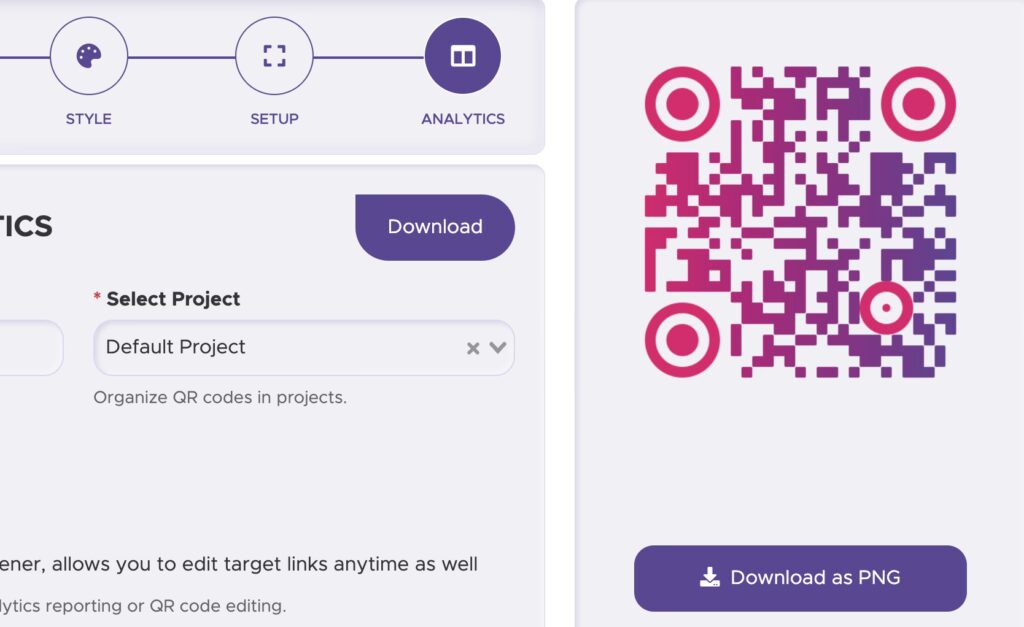 - Generer og download: Når du er tilfreds med indhold og design, klikker du på 'Generer' eller 'Opret'. Din QR-kode vises, og du kan downloade den i forskellige formater som PNG eller SVG, klar til brug.