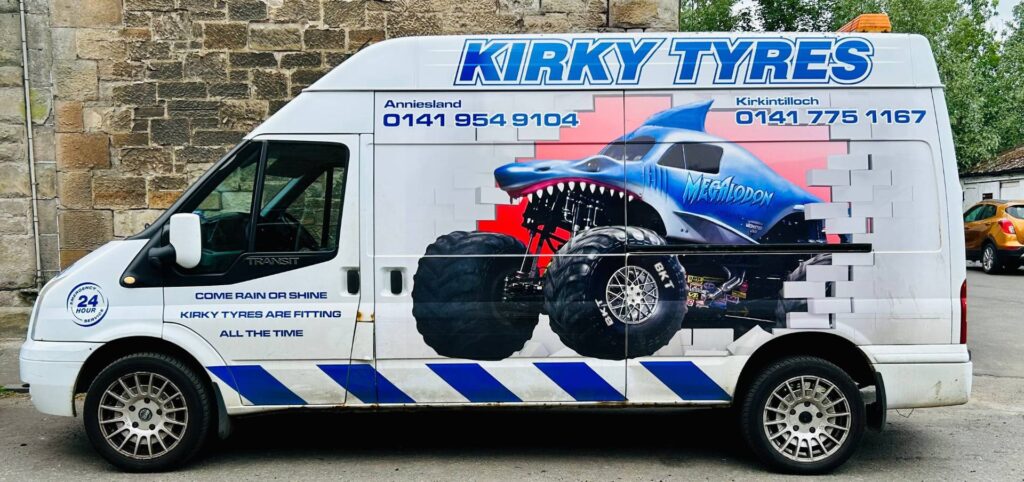 Vi har en flåde af varevogne dedikeret til at levere en 24/7 mobil dækservice i Glasgow og alle omkringliggende områder. Med varevogne på flere lokationer kan vi hurtigt reagere på alle opkald, uanset hvor du befinder dig. Vi dækker Glasgow, East & West Dunbartonshire, North & South Lanarkshire, Renfrewshire, East Renfrewshire, Inverclyde, Stirlingshire & Ayrshire. Alle vores varevogne er fuldt udstyret og kan skifte et dæk overalt. Hvis du får et punkteret dæk, mens du kører, kan vi sikkert skifte dit dæk på vejen. Ligeledes, hvis du opdager et fladt dæk derhjemme eller på arbejdet, kan vi komme når som helst (24/7), eller du kan booke os, hvis det ikke er akut. Vigtigst af alt, vil du finde, at vores priser er ekstremt konkurrencedygtige, og vores service er enestående. Du kan klikke her for at læse nogle anmeldelser eller komme i kontakt for et hurtigt tilbud. Hvis det er sikkert at køre, kan du også bringe din bil til vores dækgarage i Anniesland. Vi har et stort lager af budget- og mærkedæk, alle til rigtig lave priser.