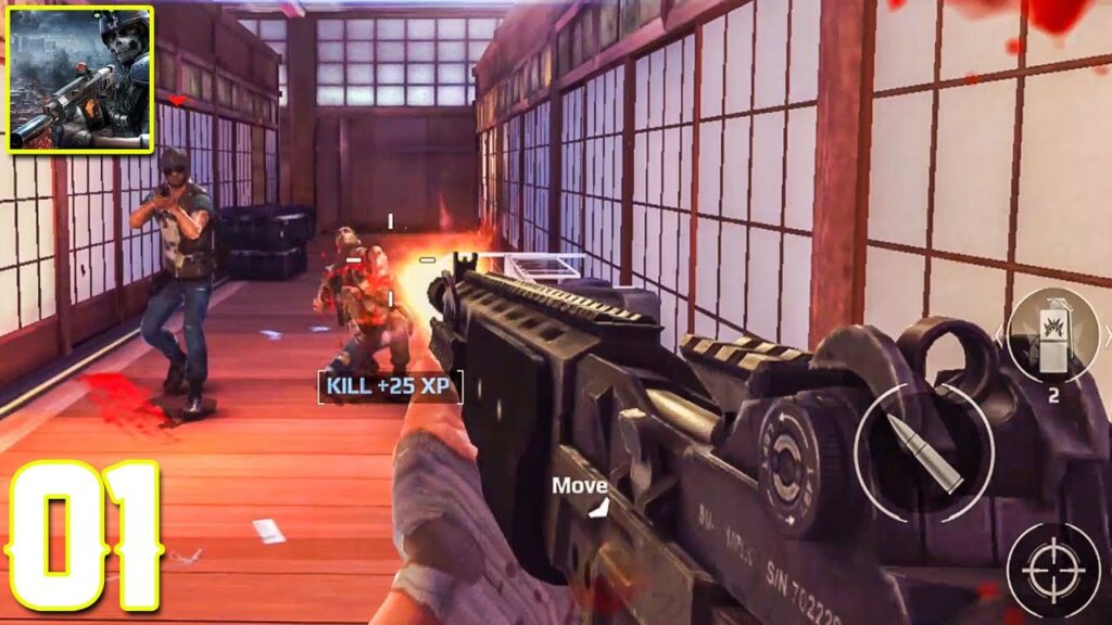 Kampagnen består af korte, actionfyldte missioner, der er perfekte til hurtige spilsessioner, hvilket passer godt til mobilspiloplevelsen. Du vil engagere dig i tempofyldte historiemissioner, der tager dig fra Tokyo til Venedig, og præsenterer en række forskellige førstepersonsskydespiludfordringer. Spillet præsenterer imponerende grafik, passende musik og stemmeskuespil, der er perfekt tilpasset et førstepersonsskydespil. Selvom præmissen har potentiale, er historien dog ofte blevet kritiseret for at være generisk og uinspireret, primært fungerende som et bagtæppe for spillets actionsekvenser snarere end en dyb, fængslende fortælling. Karakterudviklingen er minimal, men actionen er ubestridelig.
