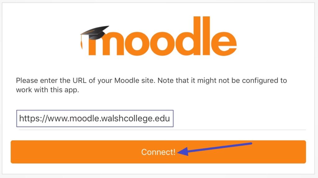 - Du logger ind med dit Moodle-brugernavn og adgangskode, som du normalt bruger på din institutions Moodle-webside. Nogle institutioner bruger også en specifik URL eller site-ID til at forbinde appen.