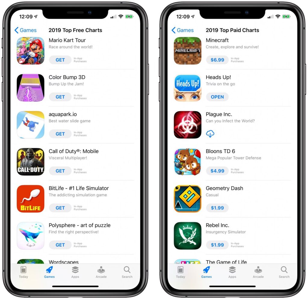 Mange iPhone spil er gratis at downloade (free-to-play), men de indeholder ofte reklamer og/eller in-app køb (IAP). Disse IAP kan variere fra kosmetiske genstande til genstande, der giver dig en fordel i spillet. Der findes også mange premium-spil, som du betaler et engangsbeløb for, og som typisk ikke indeholder reklamer eller yderligere køb, udover eventuelle udvidelser. Apple Arcade tilbyder et abonnement, der giver adgang til en stor samling premium-spil uden IAP eller reklamer.