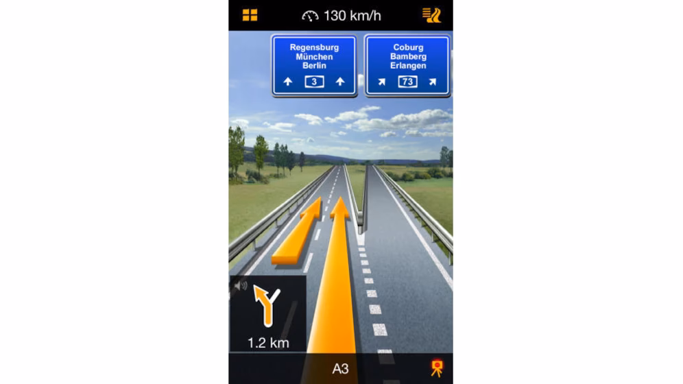 Appen byder også på realistiske skilt- og vejskiltsvisninger, der giver dig et konstant overblik takket være fotorealistiske visninger af vejkryds og vejskilte. Dette er især nyttigt ved store motorvejskryds eller i byer med mange spor, hvor det kan være svært at orientere sig. Med den dynamisk vognbaneassistent bliver du altid guidet ind i den rigtige vognbane ved uklare afkørsler eller motorvejsafkørsler. Dette reducerer stress og forhindrer pludselige vognbaneskift.
