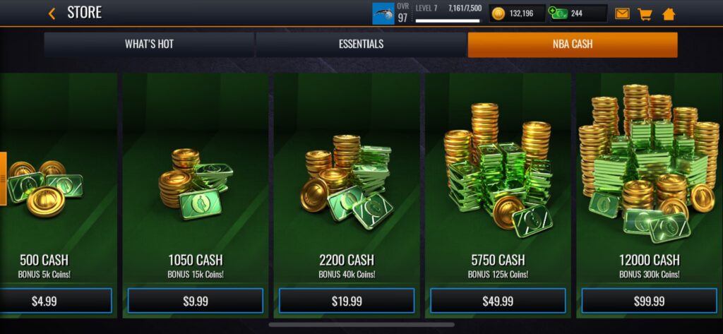 Med NBA Cash kan spillere købe en række forskellige genstande og fordele, såsom: