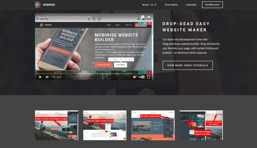 Mobirise: Offline, blokbaseret og mobilvenlig