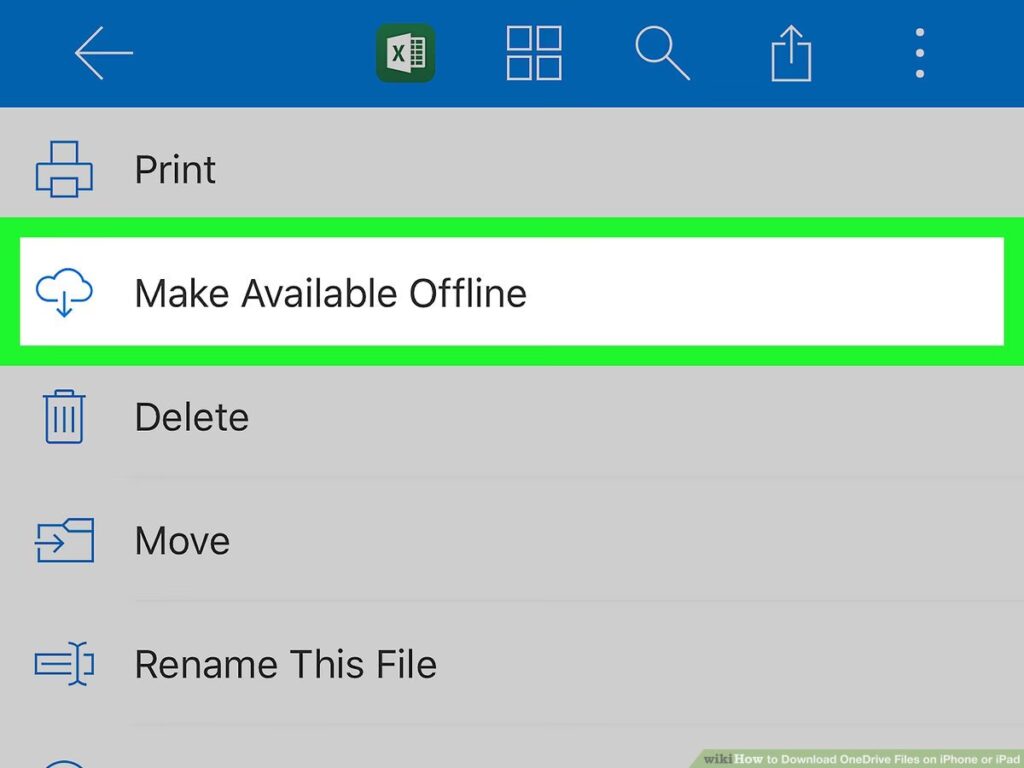 Bemærk: Hvis du ikke planlægger at fjerne OneDrive-appen fra din iPhone, kan du også vælge "Gør tilgængelig offline" (eller "Make Available Offline") i stedet for at downloade filen. Dette gælder for både dokumenter, videoer og fotos. Filen vil derefter blive gemt lokalt i OneDrive-appen og kan tilgås uden internetforbindelse, men den vil ikke være direkte i din Fotos-app eller Filer-app.