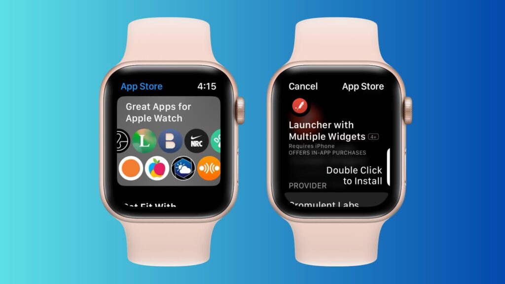 6. Bekræft download: Når du bliver bedt om det, skal du dobbeltklikke på sideknappen (knappen lige under Digital Crown) for at bekræfte download og installation af appen. Dette er en sikkerhedsforanstaltning for at forhindre utilsigtede køb eller downloads.