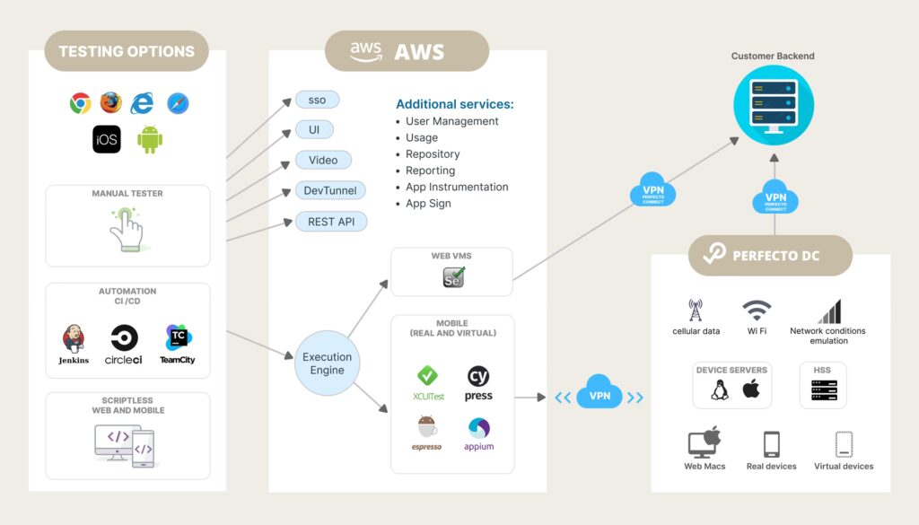 Perfecto understøtter populære frameworks som Appium, hvilket gør det nemt at bygge og skalere automatiserede testscripts.