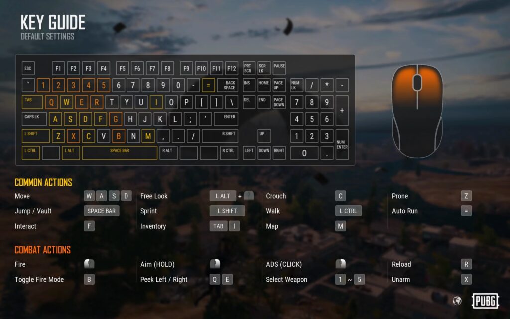 En af de store fordele ved Tencent Gaming Buddy er, at standardtastaturmappingen for PUBG Mobile er yderst solid og intuitiv fra starten. Her er en oversigt over de mest almindelige kontroller efter en frisk installation: