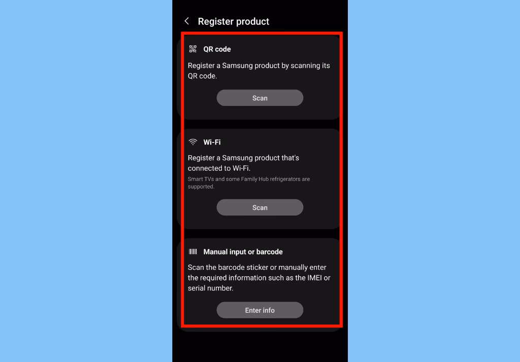 Samsung Members appen tilbyder typisk flere metoder til at registrere dit produkt for at imødekomme forskellige præferencer og situationer:
