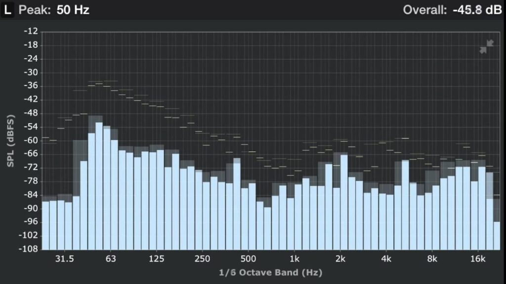 - Peak Hold: Denne funktion viser de højeste lydniveauer, der er registreret for hver frekvens over en periode, hvilket er nyttigt for at identificere pludselige, kortvarige lydspidser.