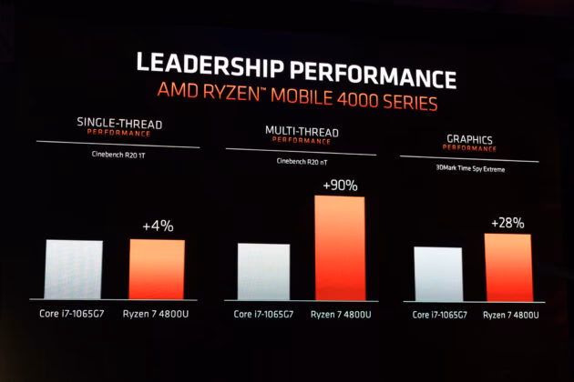 Disse arkitektoniske fremskridt gjorde Ryzen 4000 til en af de mest effektive og kraftfulde mobilprocessorer på markedet ved lanceringen.