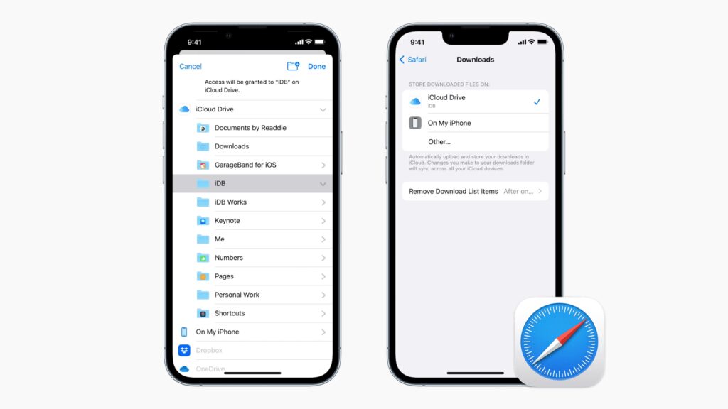 - iCloud Drive – Overførsler: Hvis du vælger denne indstilling, vil dine downloadede elementer være tilgængelige på dine andre enheder også, hvis du er logget ind med det samme Apple ID. Dette er ideelt for synkronisering og backup.