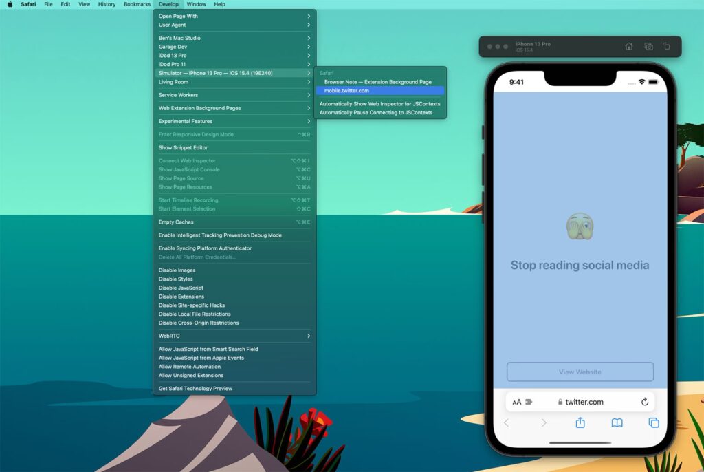 How do I emulate an iPhone or iPad in Safari?
