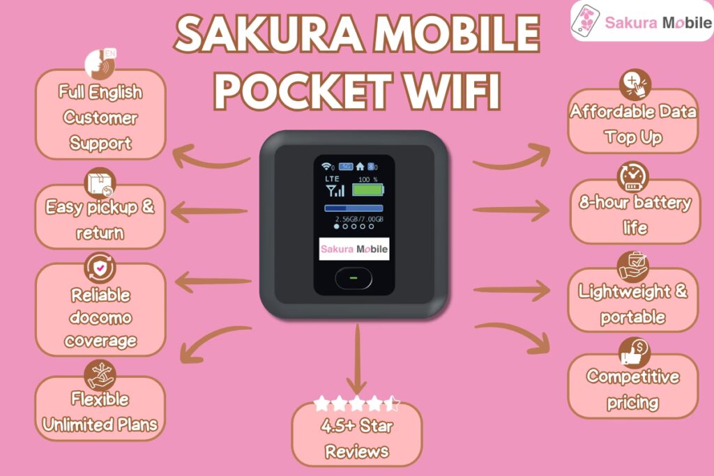 Sakura Mobile positionerer sig som en praktisk løsning for rejsende, der ønsker en stabil og problemfri internetforbindelse over hele landet. I denne anmeldelse dykker vi ned i deres Pocket WiFi-tjeneste og ser på priser, dækning i Japan, fordele og ulemper samt den samlede brugeroplevelse. Vores mål er at hjælpe dig med at afgøre, om Sakura Mobile er den bedste løsning for din rejse til Japan.