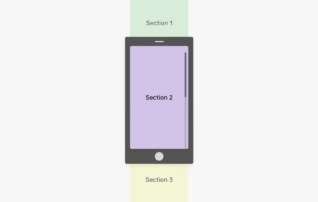 - Fuld side visning: Hele den rullende side eller dokument bliver nu vist i et langt format. På højre side af skærmen vil du se en vertikal søgelinje, hvor en del er markeret. Denne markering viser dig, hvilken del af det fulde billede du ser lige nu. Du kan trække i denne markering for at navigere gennem hele det scrollende skærmbillede.