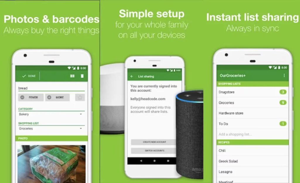 | OurGroceries | Stemmegenkendelse, favoritter, billeder (Premium) | Ja (problemfri synkronisering) | Ja | Ja (Amazon Echo, Android Wear) | Gratis/Premium |