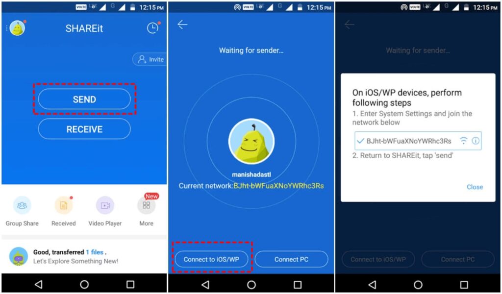 - Send fra iPhone: På din iPhone skal du starte SHAREit og trykke på 'Send'.