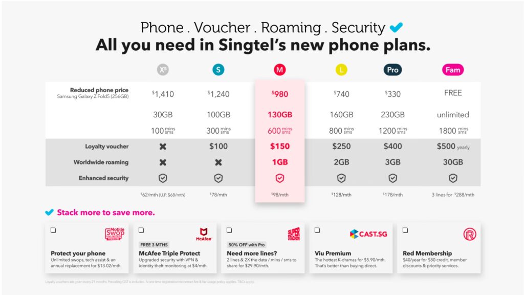 Det er værd at bemærke, at Singtel XS Phone Plan ikke inkluderer McAfee Mobile Security. Selvom Singtel tilbyder ekstra minutter på XS Phone Plan og på S til Priority Pro Phone Plan, er McAfee Mobile Security specifikt undtaget for kunder på telefonplaner for CIS (Corporate Individual Scheme). Singtel opfordrer kunder til at udforske deres brede udvalg af postpaid mobilabonnementer, herunder Phone Plans, SIM Only plans og Mobileshare plans, med tilgængelige eSIM-muligheder.