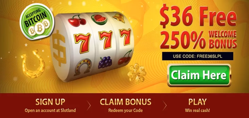 Minimum deposit requirements: $25 Open a new account at Slotland Casino and enjoy 200% match bonus for a first deposit of at least $25 using the code WELCOME1ST200. Register a new account with Slotland Casino using the code FREE40BFL and enjoy $40 no deposit bonus at registration. Use the bonus code at the cashier to redeem it.