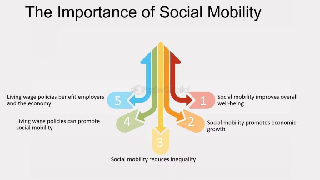 Social mobilitet er afgørende for et sundt og retfærdigt samfund. Når der er høj social mobilitet, betyder det, at individer har en reel chance for at forbedre deres liv, uanset deres startpunkt. Dette fremmer meritokrati, reducerer ulighed, øger den sociale samhørighed og kan bidrage til økonomisk vækst, da talent og potentiale udnyttes fuldt ud. Lav mobilitet kan føre til stagnation, frustration og social uro.